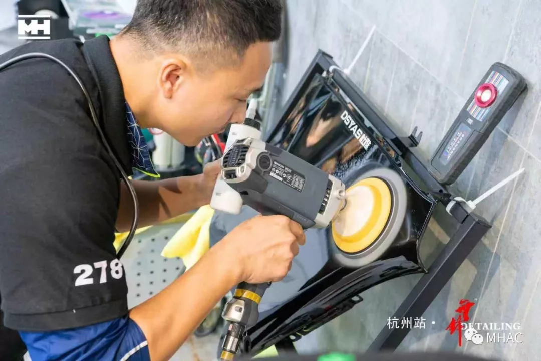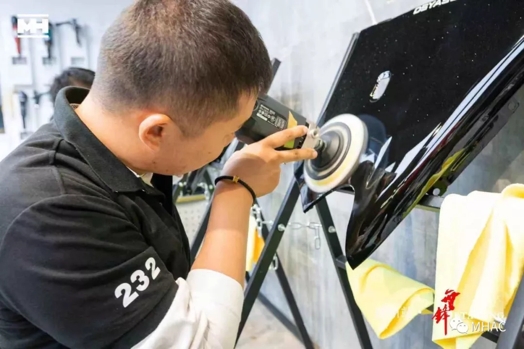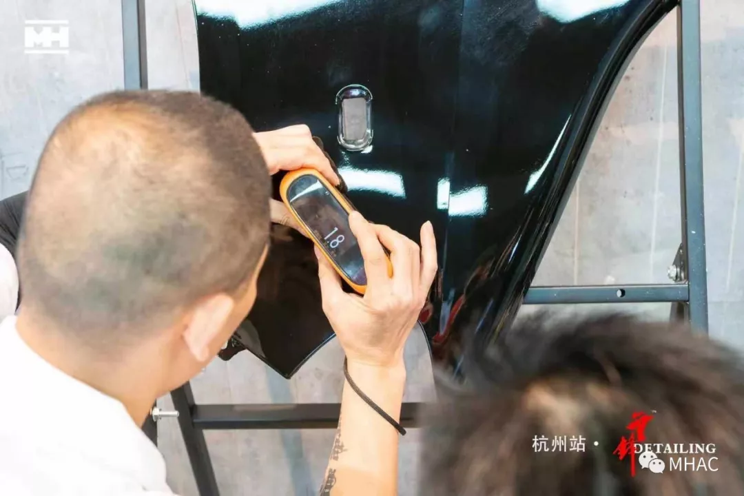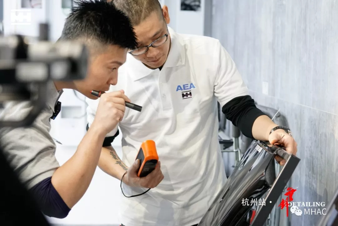 文江老师及陆小明老师开始对选手漆板逐个进行认真检查