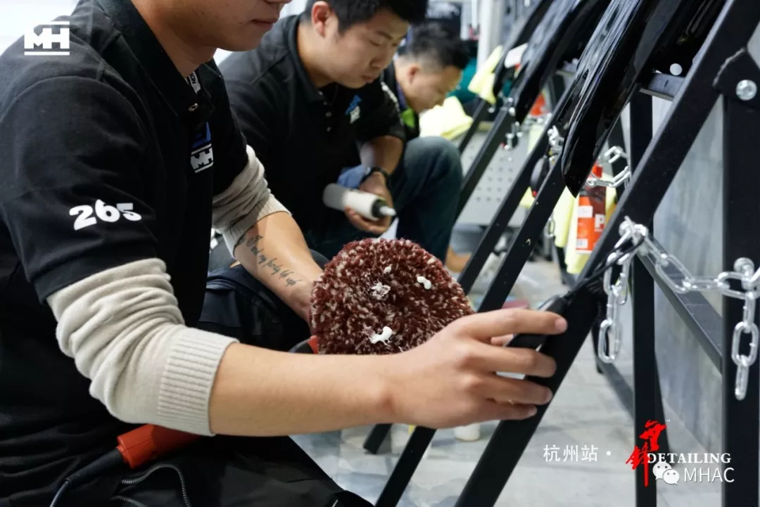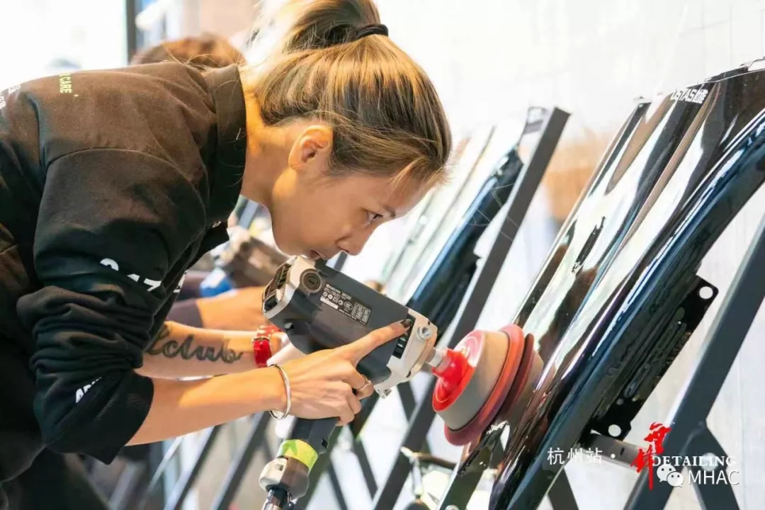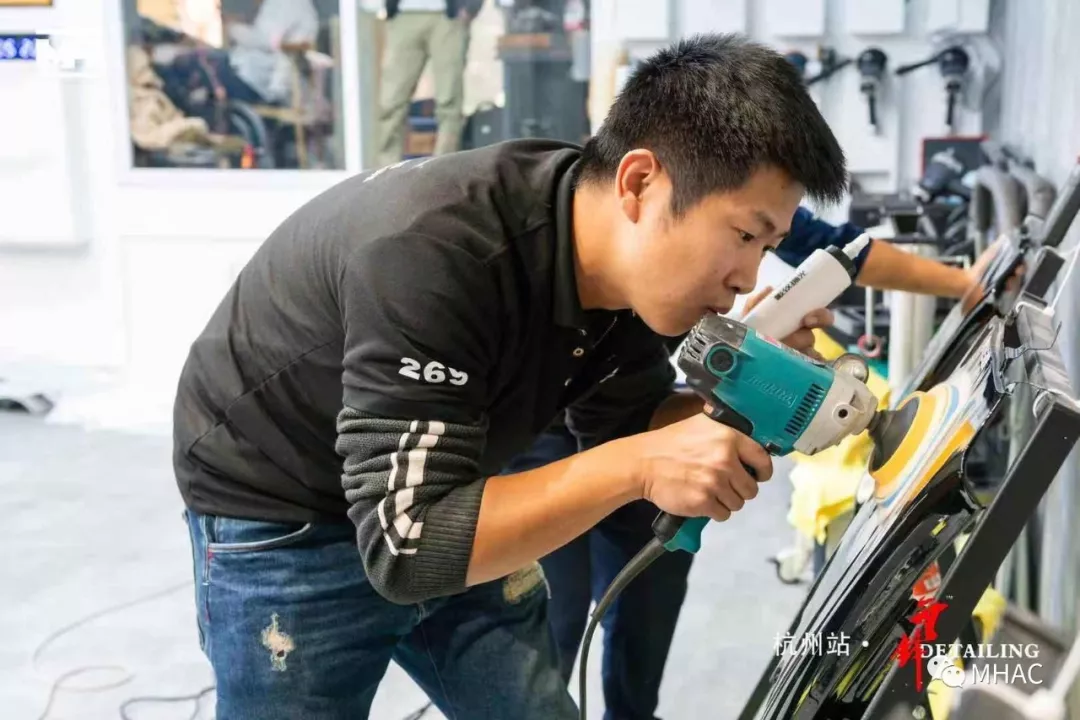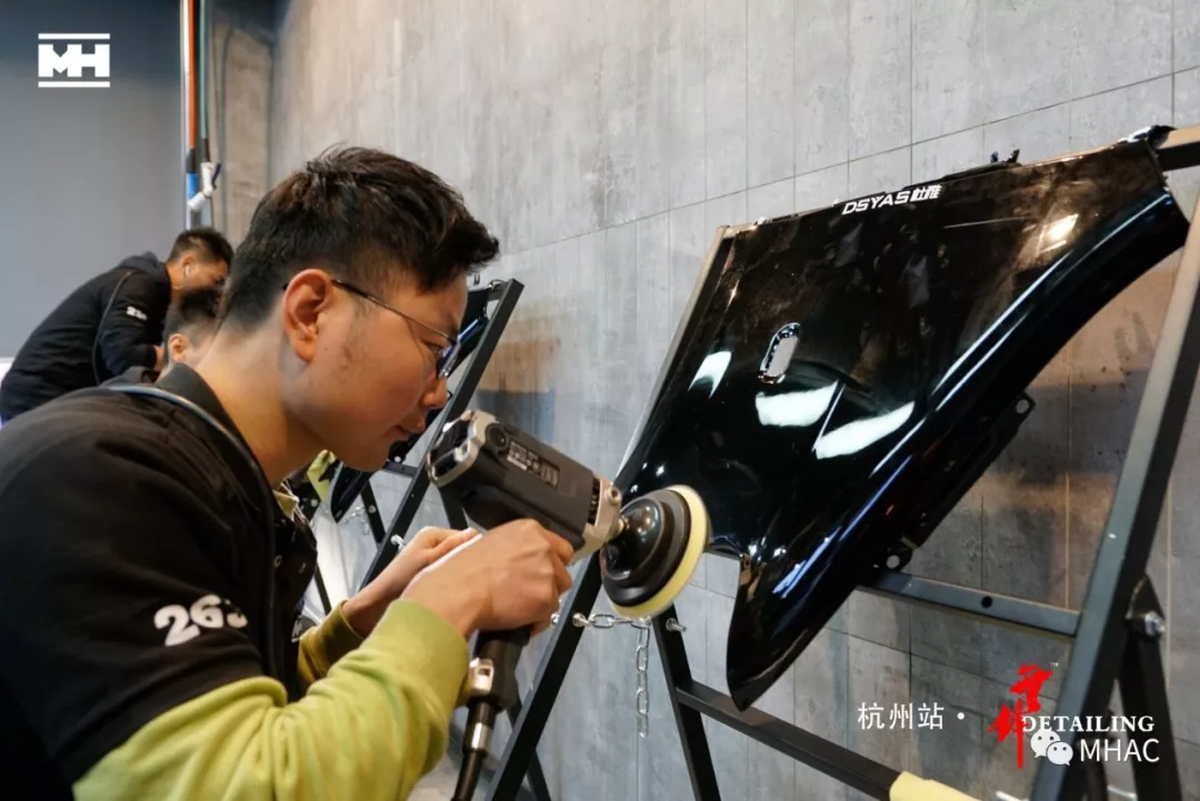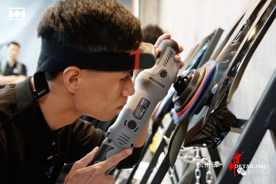 文江老师及陆小明老师开始对选手漆板逐个进行认真检查