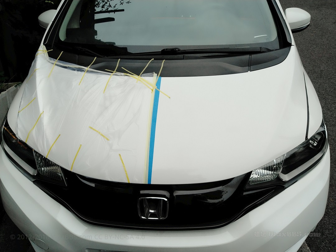 打蜡后把引擎盖一半用塑料膜遮蔽包住(如图包的是左边哈)然后就开回家正常使用了!