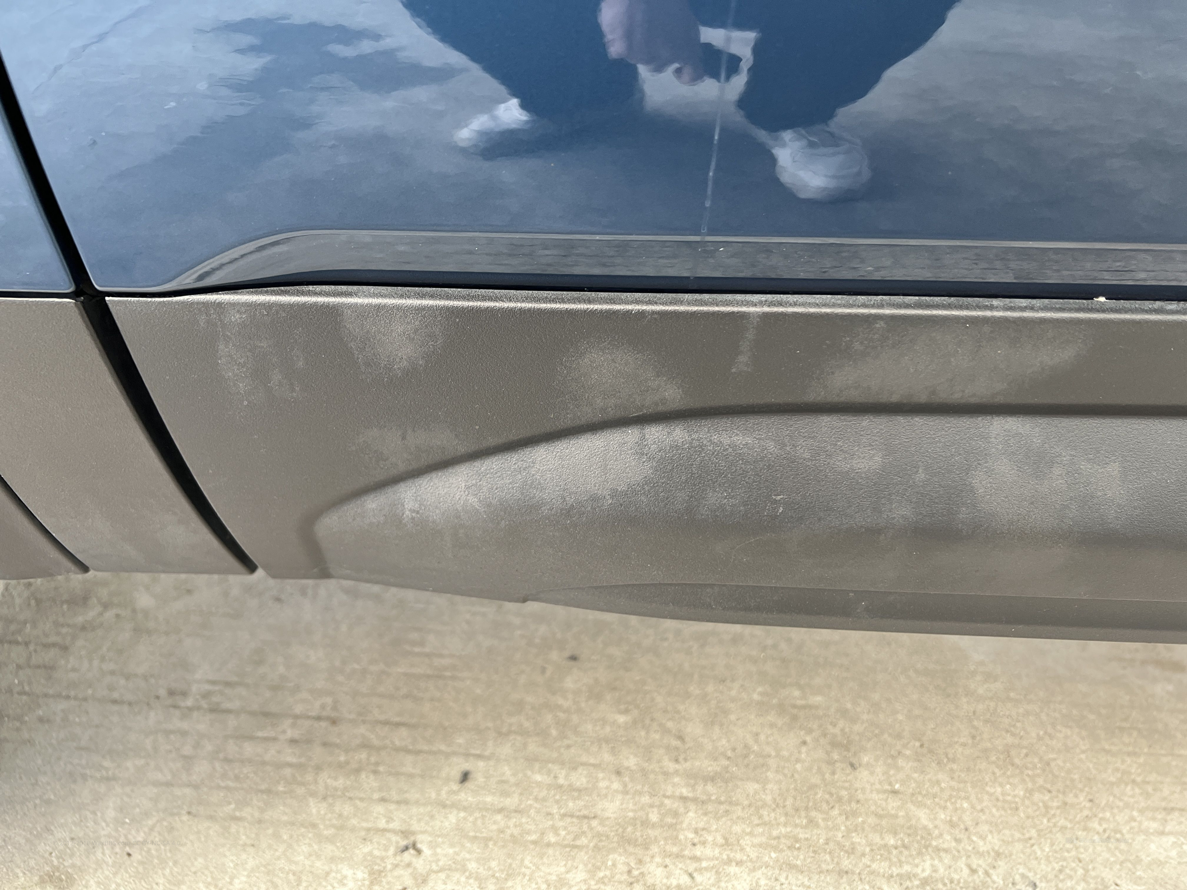 塑料饰边的话修复办法多的是,我建议你先拿APC好好清洗下,然后用热风枪加热修复,先找一个跟你车身塑料饰边材料相似的东西熟悉一下加热修复过程,比如电动车的塑料踏板,建议从热风枪最低的温度开始慢慢找适合的温度,前提是建议你慢点急不得,只要提高了热风枪的温度你也要提高一点移动的速度,直到表面变黑,千万别烤化了,最后用AG的“SILICONE FREE PLASTIC CONDITIONER”和“PLASTIC & TRIM CONDITIONER”养护一下,当然像是美光或者沃夫冈也有这类产品。