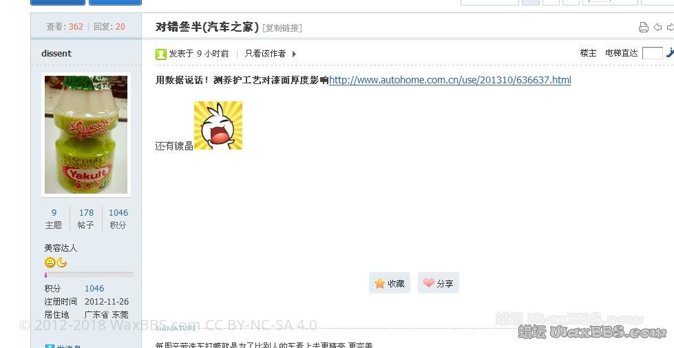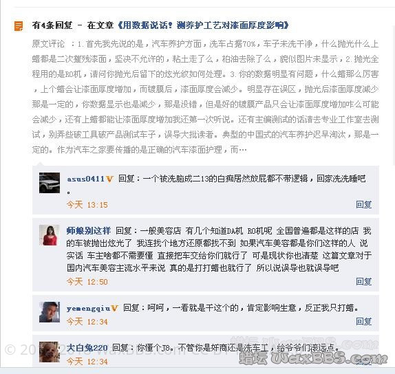 一张截图是早上坛友发的汽车之家的关于用数据说话!测养护工艺对漆面厚度影响http://www.autohome.com.cn/use/201310/636637.html