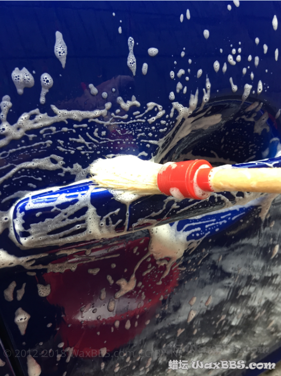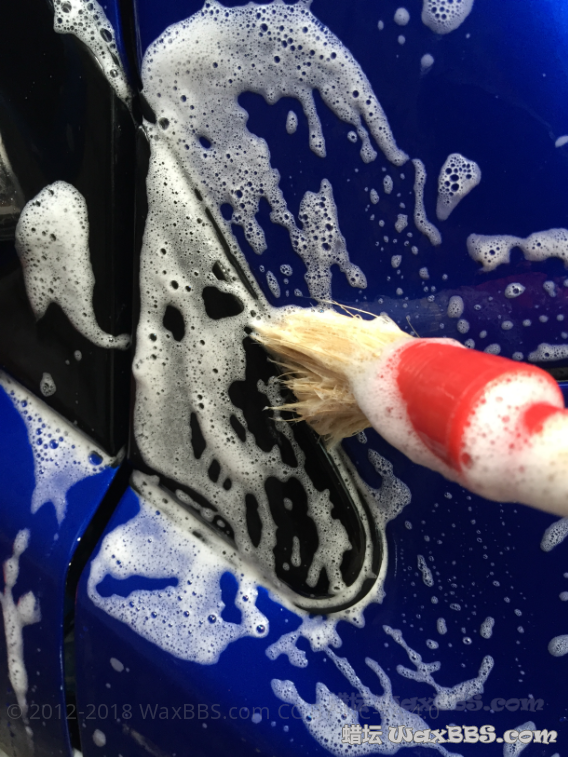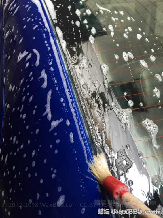 3、两桶水洗车+边缝细节刷洗(美光D110、D101)由于没洗车机跟泡沫喷壶,PA预洗步骤略去