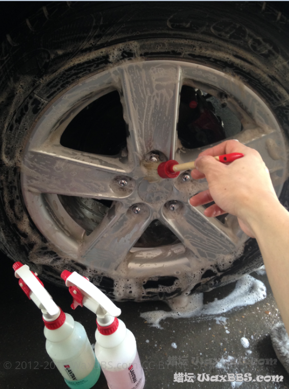 洗车液选D110,个人比较土豪,没按比例看心情想倒多少就多少,洗车过程就不用发了吧,来点细节清洗图,我习惯用D101去刷,我喜欢它的强力去油污