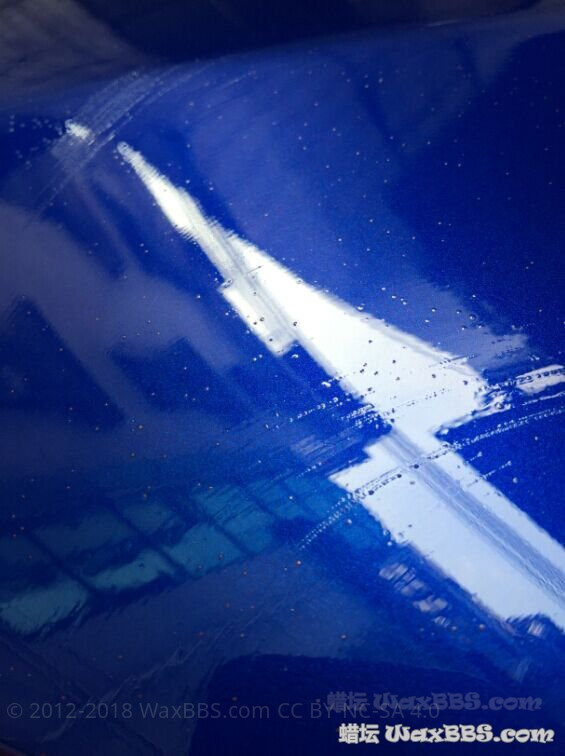 接着全车做一次镜面还原处理,研磨剂用曼泽纳的4000号,做完后漆面的杂纹明显大大减少了,处理前的杂纹以及氧化层