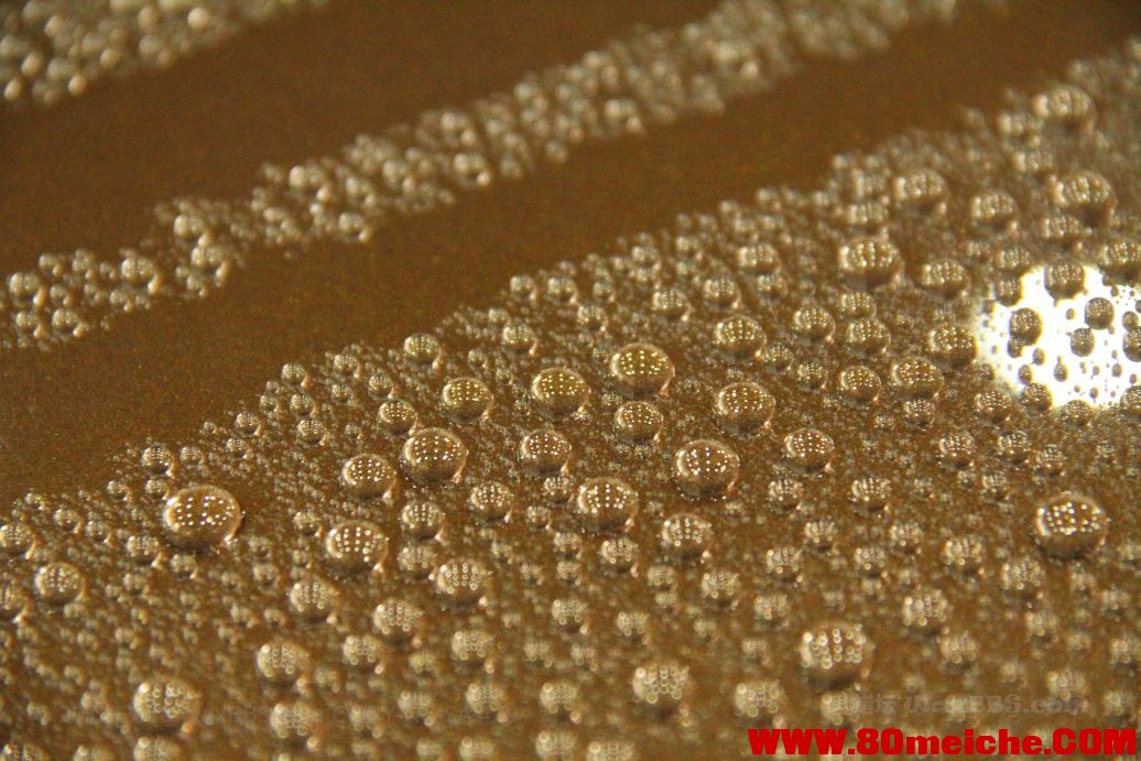 后来测试了一下泼水效果, 水珠非常漂亮. 另附一张防伪标签.
