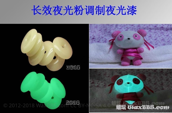 4、长效发光颜料的用量: 可以根据要求的发光亮度和发光时间选择发光颜料夜光粉的用量,推荐配比为15-50%(重量比)30%是较为理想的配比。
