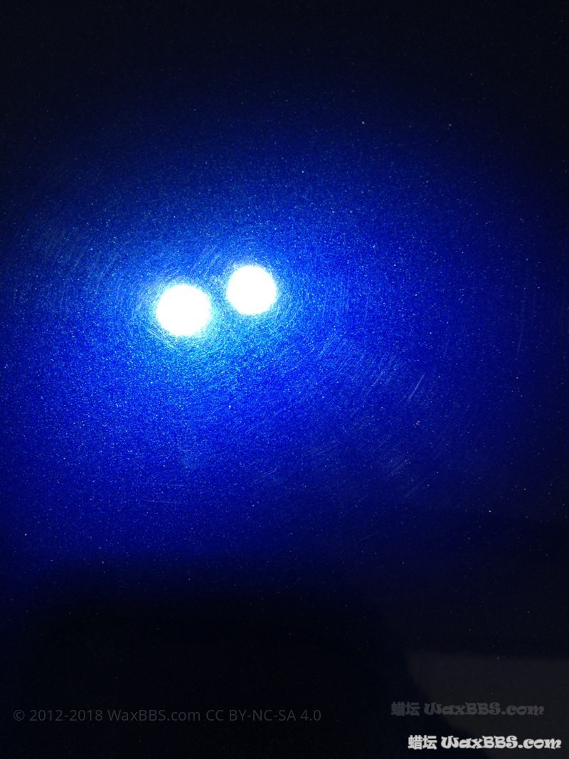 操作跟高尔夫略有不同:7424XP猛男1000配红棉2档施加一点下压力慢跑推蜡,推开后4档施加下压力同样慢跑,之后再5档无下压力慢跑,之后猛男2500配黄棉同样跑法。最后发现跟之前的高尔夫相比效果要好一点,可以看出灯光周围的划痕明显少很多
