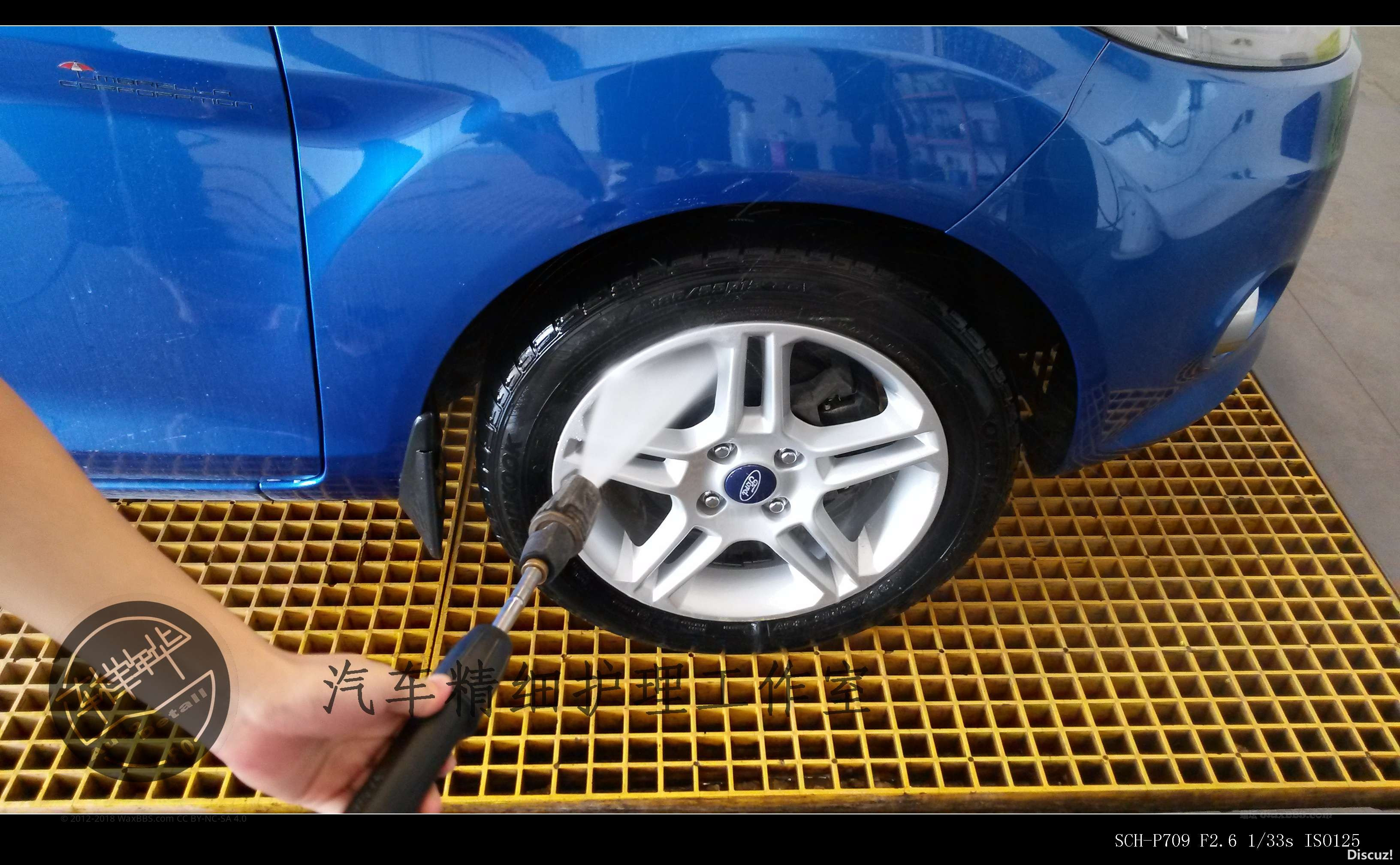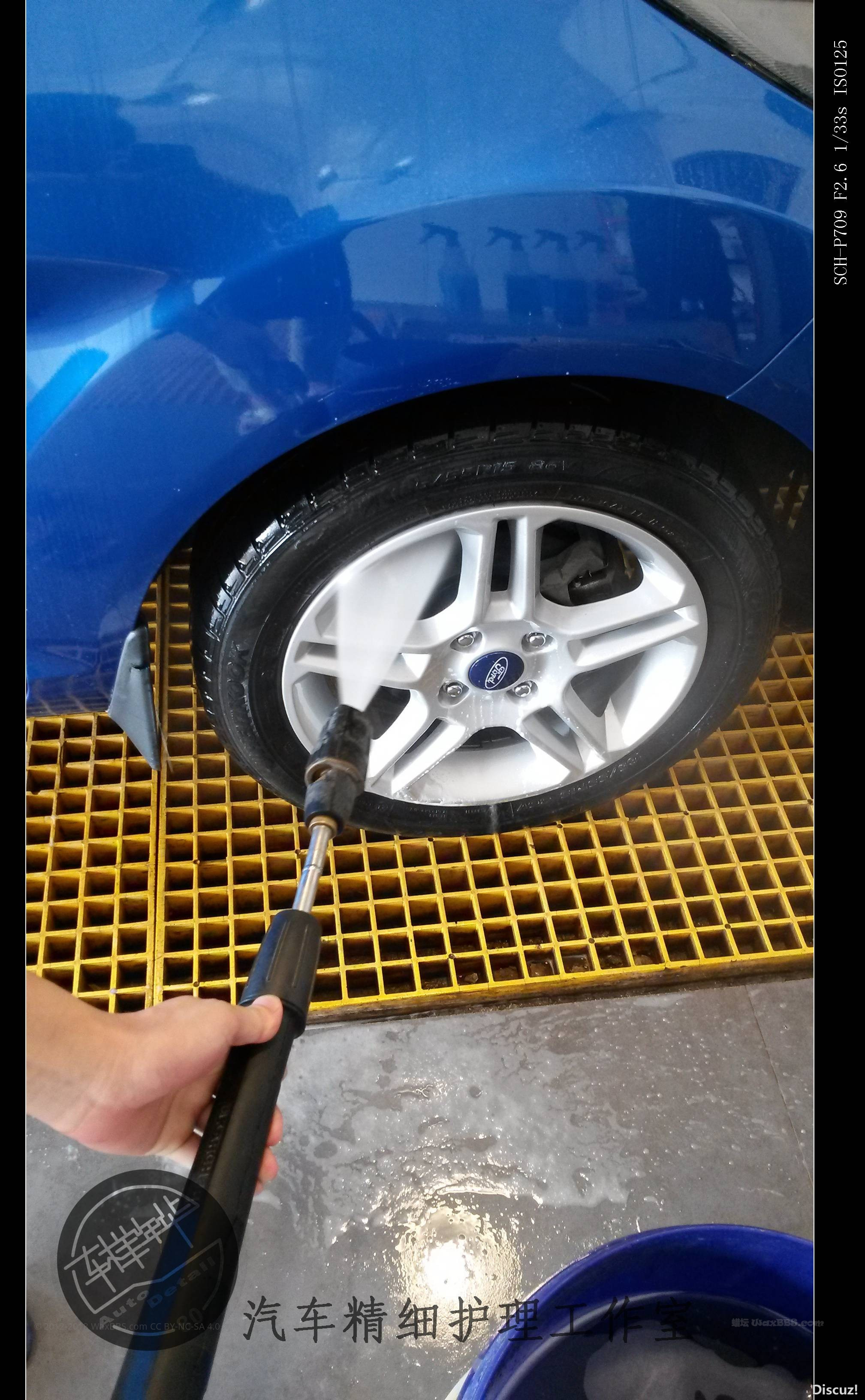 预洗很重要,当然轮胎和轮毂也一样。用的是美光D110高泡洗车液 4:1兑水。