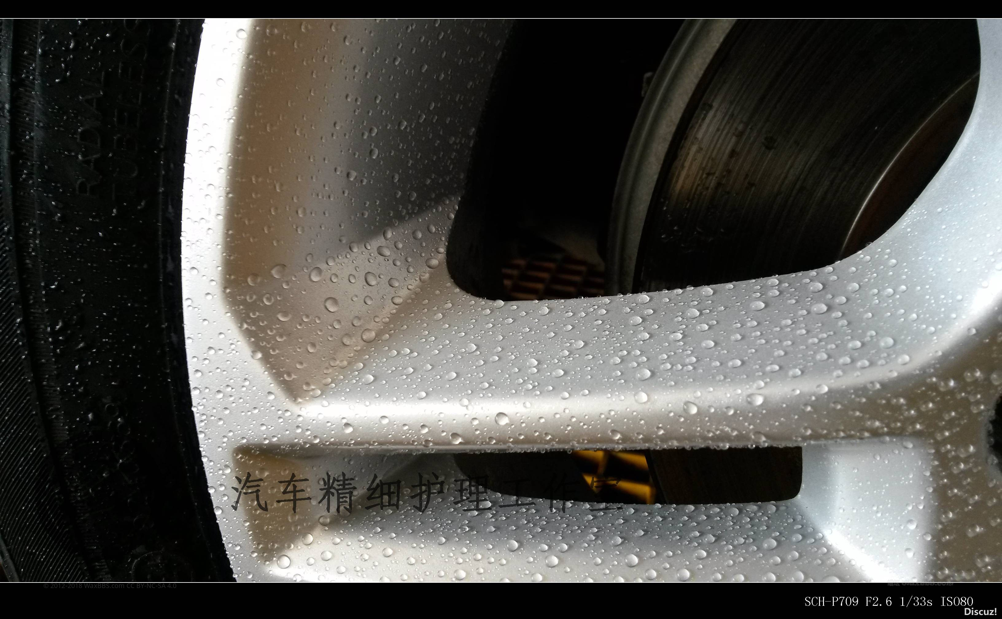这是打蜡后轮毂的水珠表现: