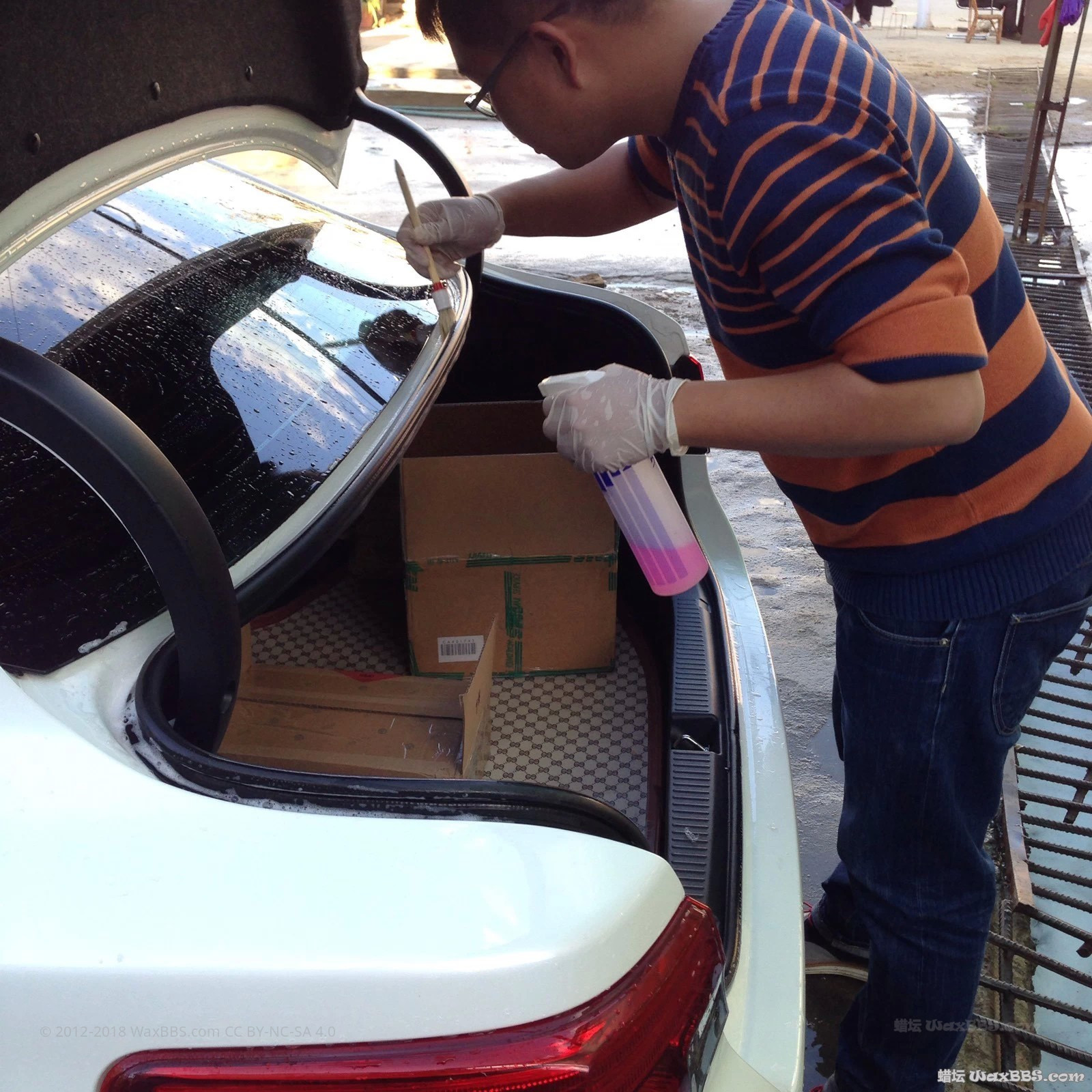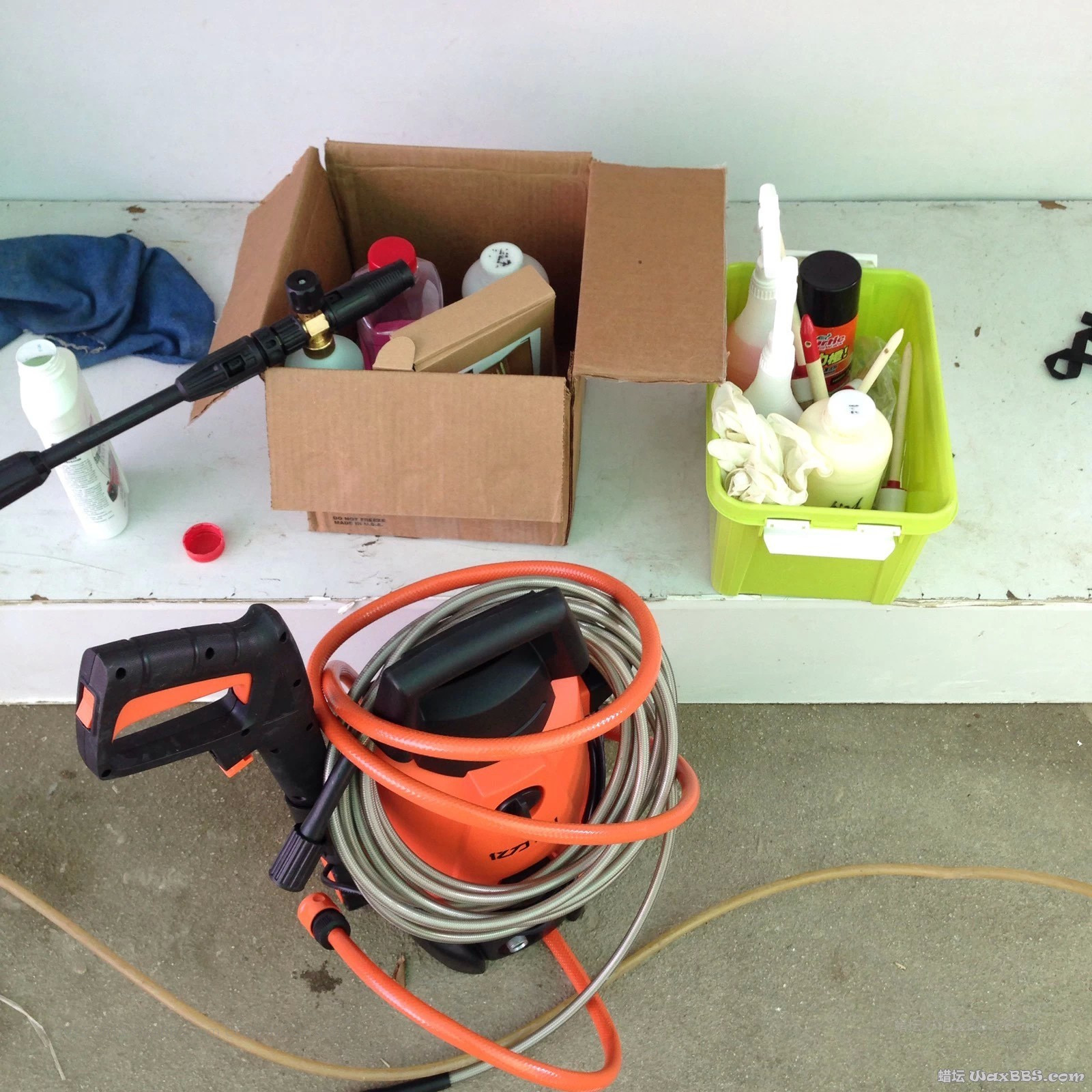 车况:车是2014年6月1号买的,至今开了将近13000公里,前包围和后包围各做过一次补漆,由于当时不懂,弄上了飞漆,就抛了一次光{:5_289:}!!!没上蜡坛以前全部都是错误的洗车方法,而且一个星期洗一次{:5_289:},后来自己买了台洗车机和一些洗车的产品{:31:},其实也是错误的洗车方法!!!后来知道了蜡坛,两个星期几乎看完了蜡坛大部分的帖子!!!于是决定今天拉着我深爱着的、也同样深爱着我的、也爱车、也爱撸车、开车技术好的女朋友撸一次车{:5_284:}{:5_284:}{:5_284:}。。。