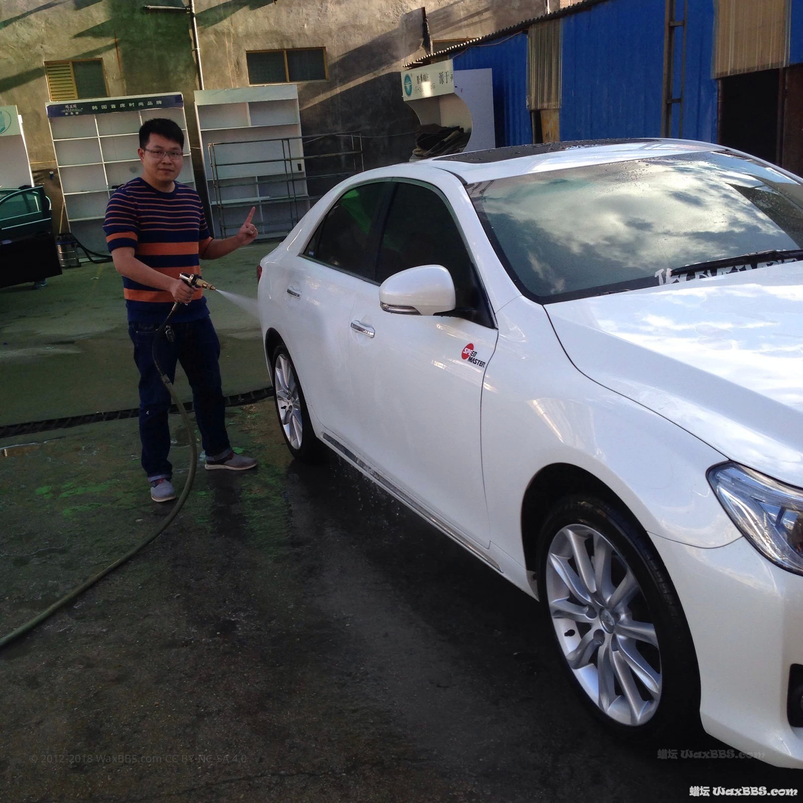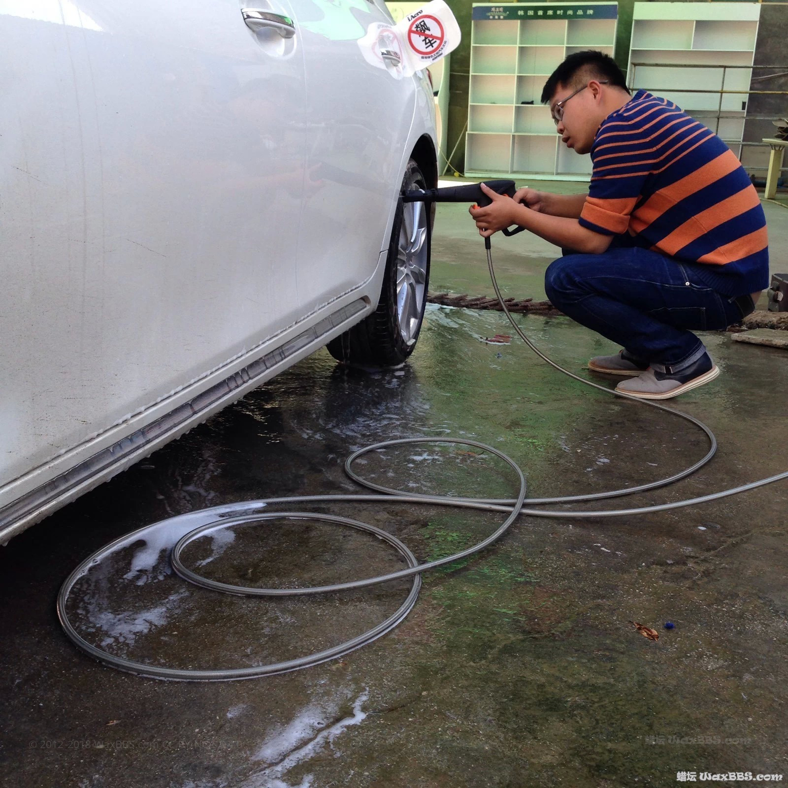 场地:自己有个车库,但是不够宽,洗车机的噪音特大,排水的问题,所以找了个生意不好的洗车店。。。