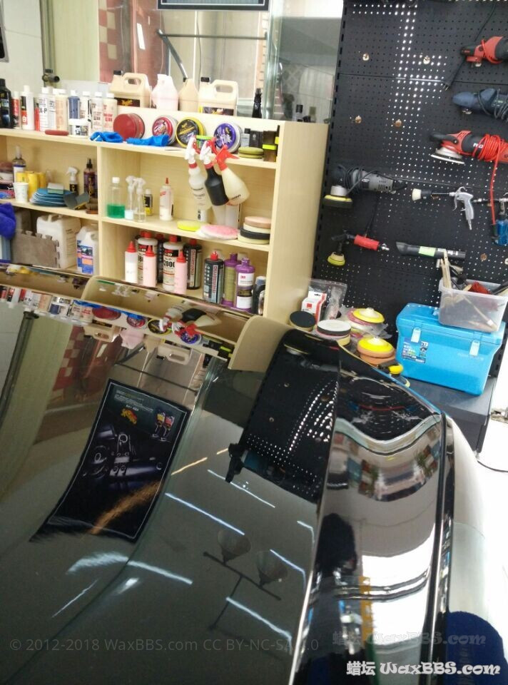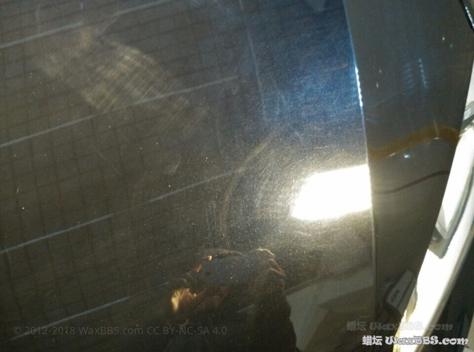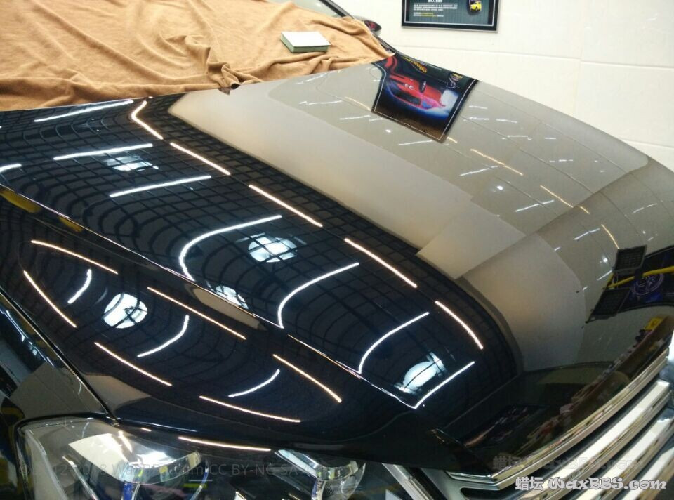 一个人施工一个人拍照,图片比较少,也不太会拍,见谅了。这车一共施工4天,2天做的4个面烤漆,2天做保健。车况除了机盖以外其他面基本都是炫光纹。机盖太坑爹了,重新烤过漆,漆特别硬,然后很多深划痕,还有之前不知道谁水砂过没抛掉的砂纸痕,整整抛了一个下午。 1.烤漆面2000号水砂,3000号过细,牧田加羊毛加FG400 2.RUPES加绿棉加美光M105做粗抛 3.RUPES加黑棉加美光M205做镜面 4.柯林845保护