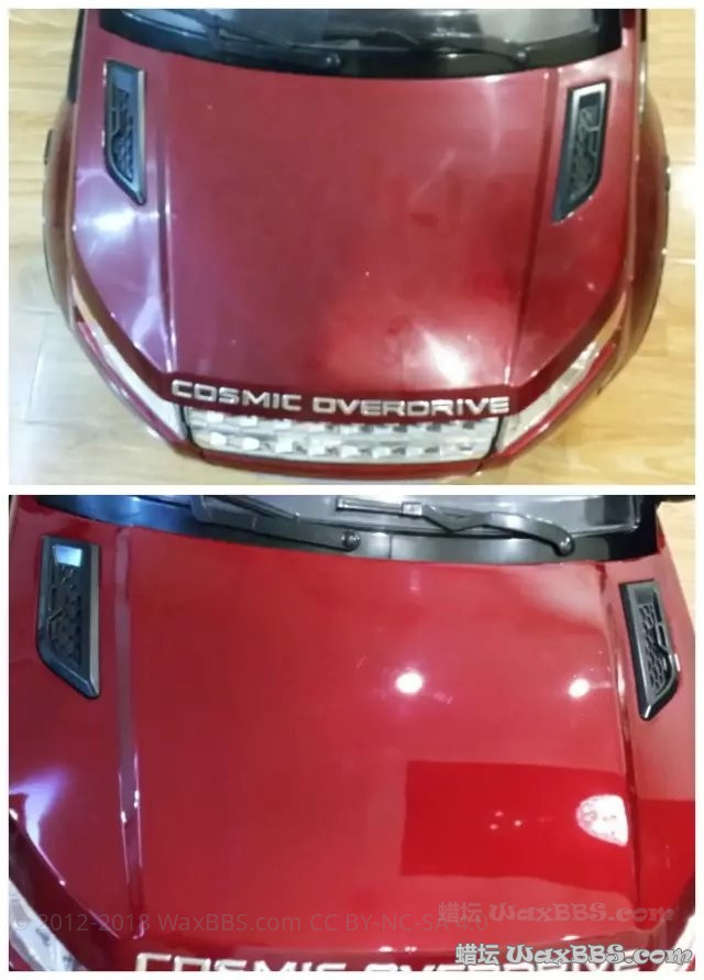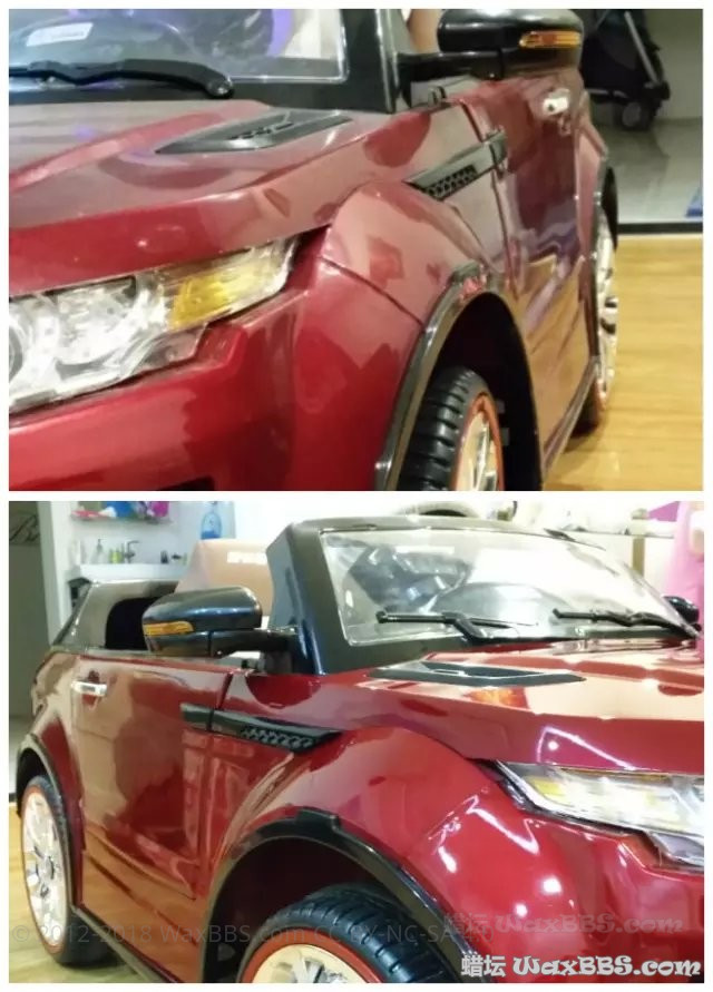 。首先这车漆面是有喷漆的,不是光塑料。其次这个漆面没有上清漆,可以说毫无保护措施,色漆层直接暴露于空气中。刚买的时候很亮,但用毛巾一擦就很多划痕,多擦几下就失去光泽了。其实这个就是真车漆面的快速写照。不正确的洗车方式、环境因素及没有做养护措施,自己的爱车就一天一天失去光泽。正如“冰冻三尺非一日之寒,滴水石穿非一日之功”漆面不是Duang一下就变“丑”的