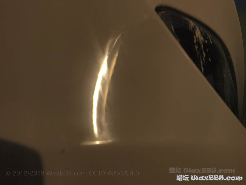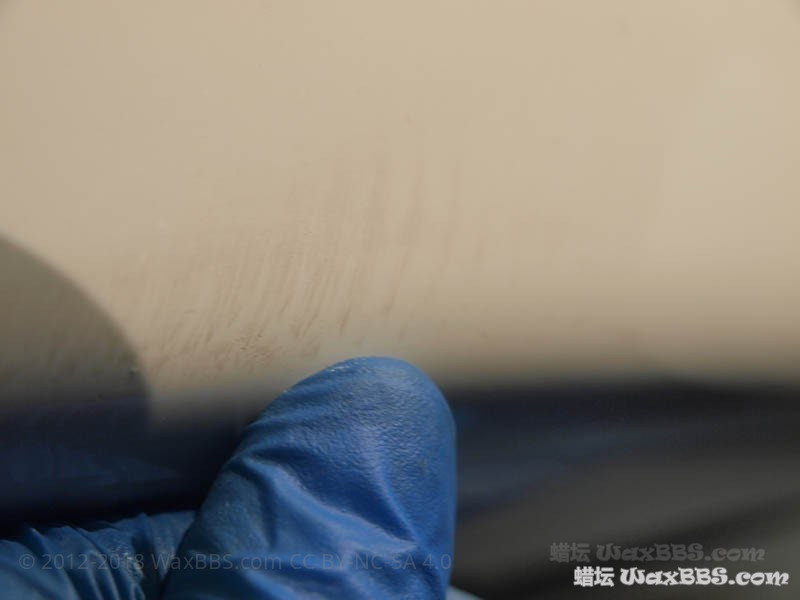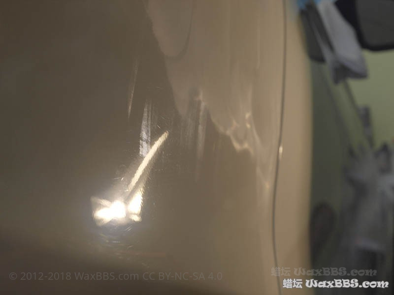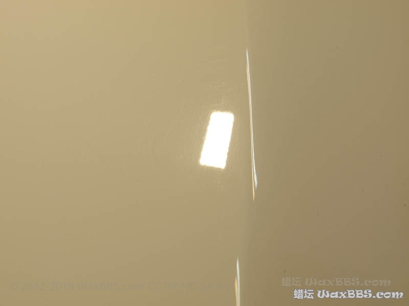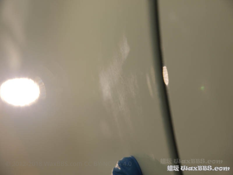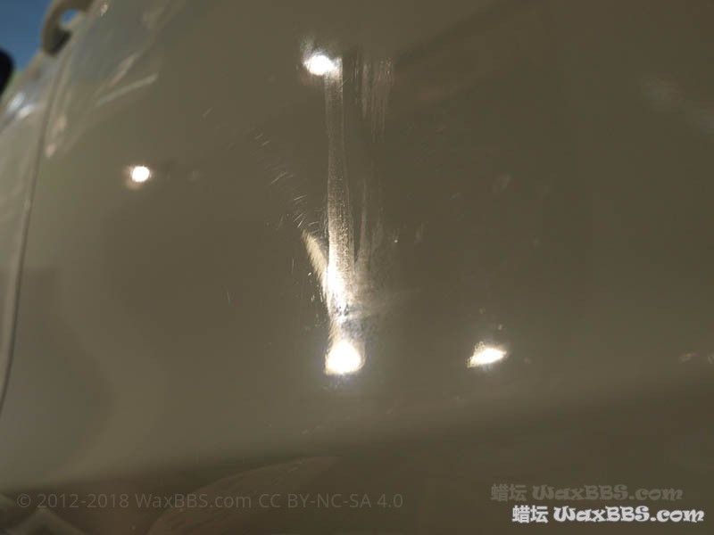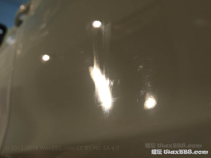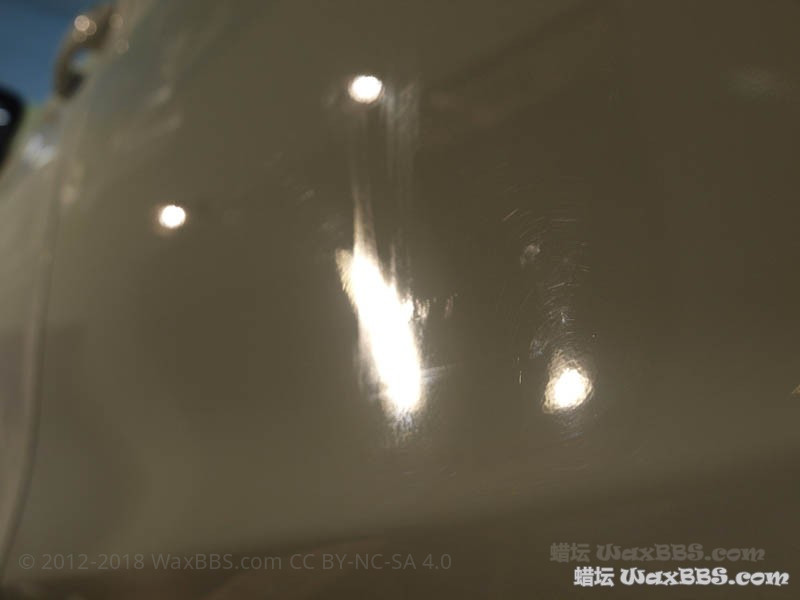 通过本次的抛光,漆损基本控制在5-10%以内(没有使用切削力更大的黄盘、紫盘甚至是羊毛盘);如果没有这些残“膜”,漆损自然会进一步降低;