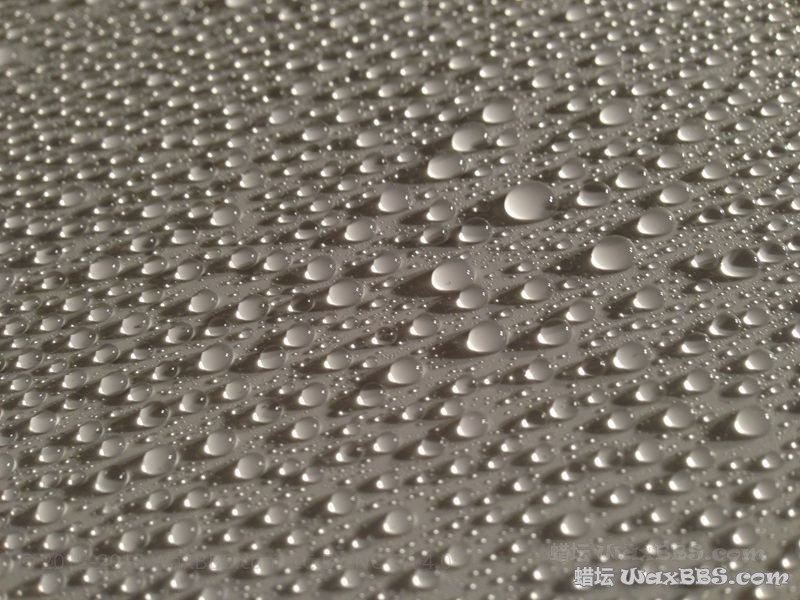 前天晚上小弟因为第一次玩915,方式方法不对最后整个机盖都是蜡痕,经过前天晚上的发帖询问和查阅明仔的历史资料,昨天晚上在自己车的机盖上试验成功~下面奉上水珠展示。请各位评价评价