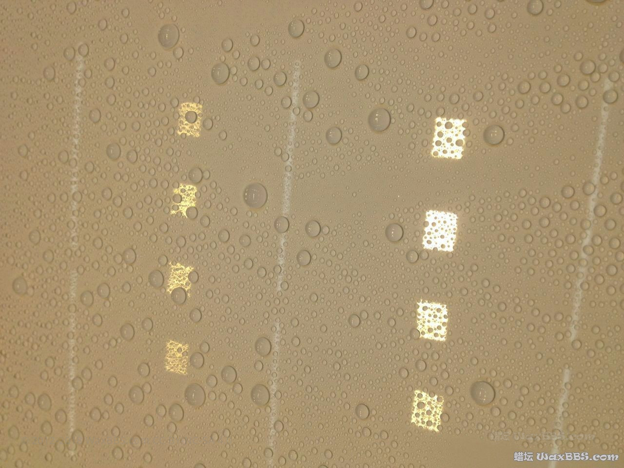 漆面处理干净之后,用科林915,之后感觉下蜡好难,另外付两张图片,泼水效果测试,大神看看这样的水珠可以吗?