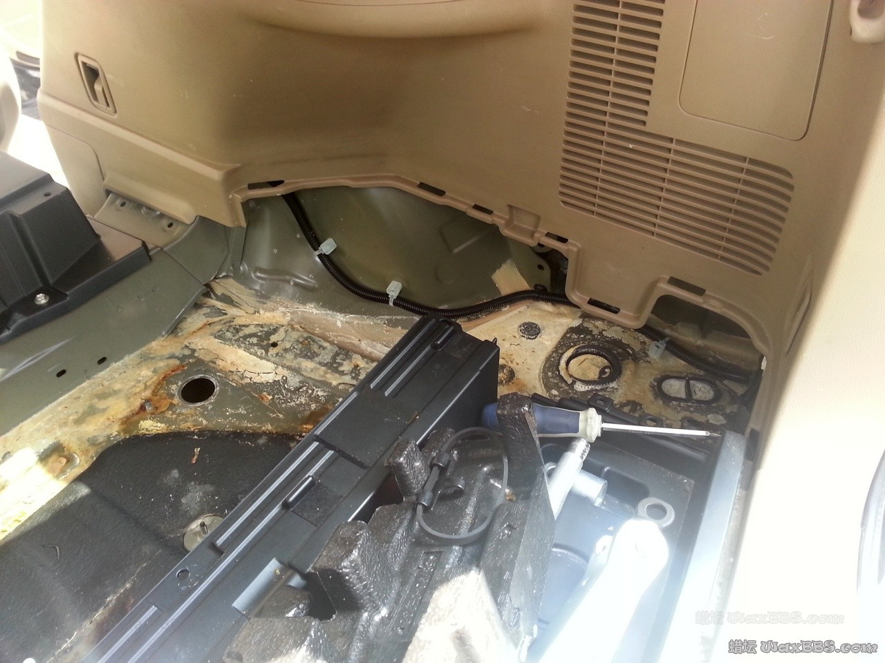 所以,只好全部拆除,清理车架地板,然后重新安装
