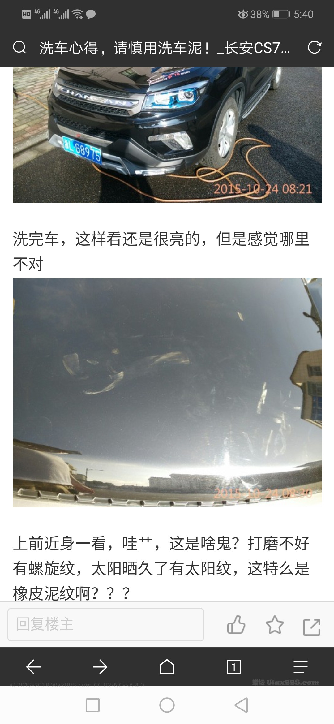 车主说是一边淋清水一边用洗车泥洗的,虽然没用洗车液或者润滑剂,但是用清水会导致车漆产生这种痕迹吗? Screenshot_20180821-174000.jpg