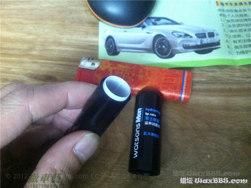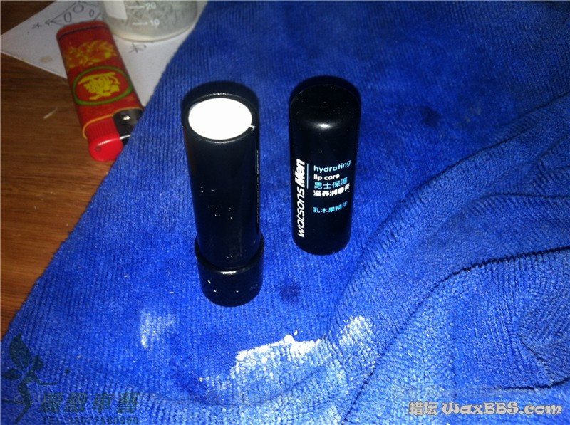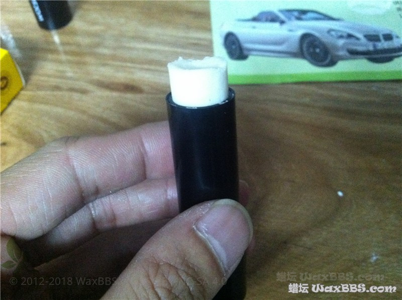 一罐蜡快用完了,剩下的在蜡盒里不多不少,使用奶油刀刮又由于蜡不够多了而且装蜡的铁罐又太深,非常不好取蜡,扔了又觉得有些可惜,想起国外一玩家使用固体胶的瓶子来装蜡,使用上非常方便,今晚就拿一个唇膏的瓶子试试看能不能做出快捷的涂抹方式