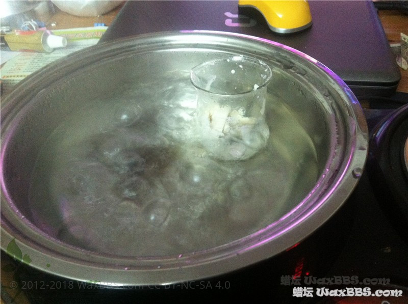 经过十多分钟大火加沸水的加热,蜡已经完全溶解了