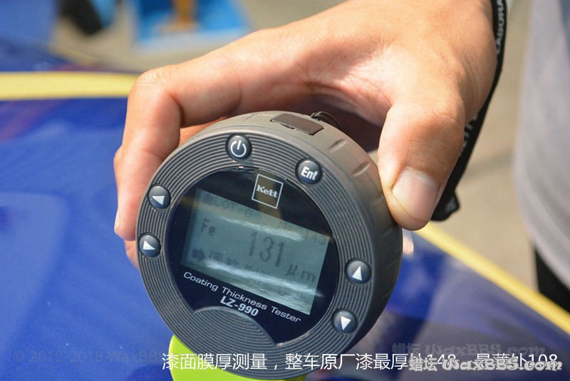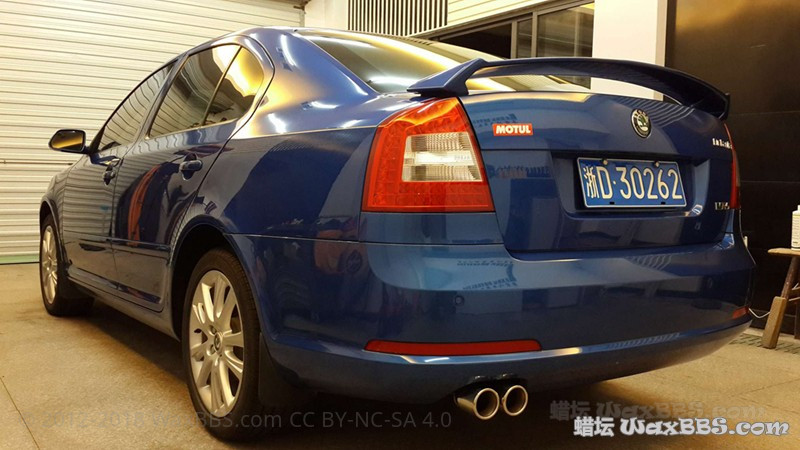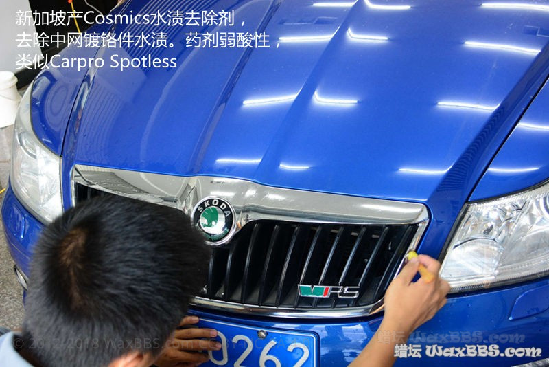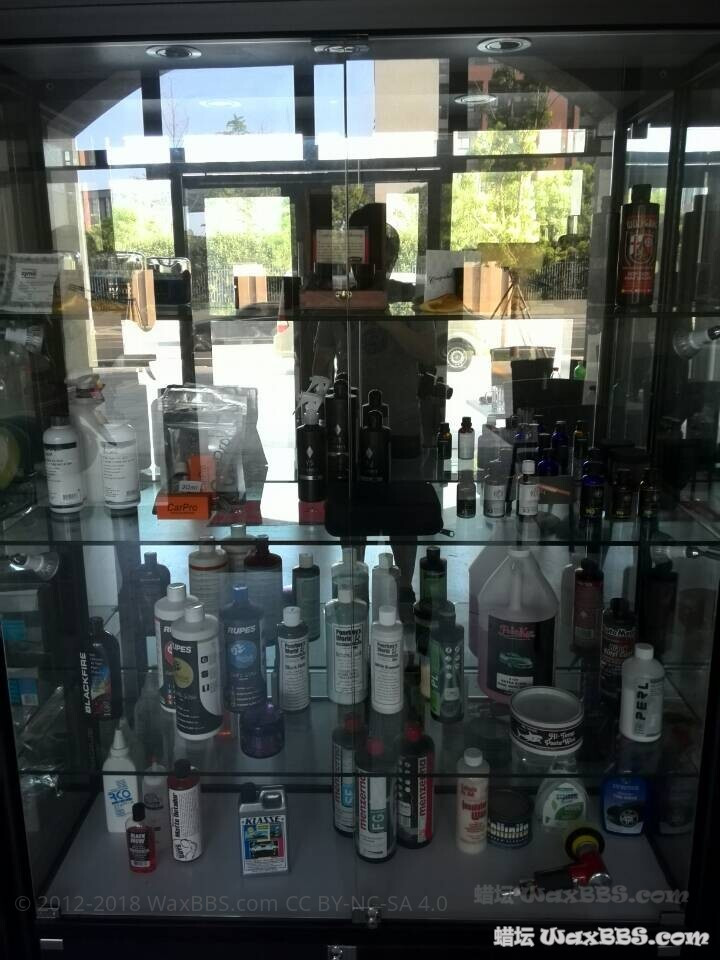 [font=微软雅黑] 下面来说说本次舟山之行。除去晚饭时间和Brian睡觉时间,总施工用时(洗车——镀膜烤干)大约为20小时。我个人不倾向于抛至完全的镜面,因为完全的镜面意味着可能会抛掉较多的清漆层,加之本身车子原厂漆面的护理情况不差,所以我并没有打算移除太深的纹,只是要求店家去除大多数纹,深的选择淡化处理。店家有6台机器,得伟(Dewalt)、Flex、Rupes、美光、车库等,各种清洗、抛光、保护产品也很多,下面会有图展示。本次施工再进行试抛后选择的是得伟RO+LC白棉+LC黑棉,配合美光M205跑全车,没有使用DA。镀膜选择的是新加坡产的Cosmics的X2两层,高泼水X3两层,然后烤干。这支产品我可能是蜡坛第一个使用的,所以我会留出后备箱盖上部钣金作为测试部位来测试抗刮和长效,这个部位准备不做任何后续护理。[/font]