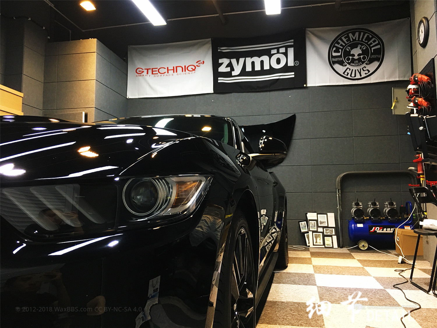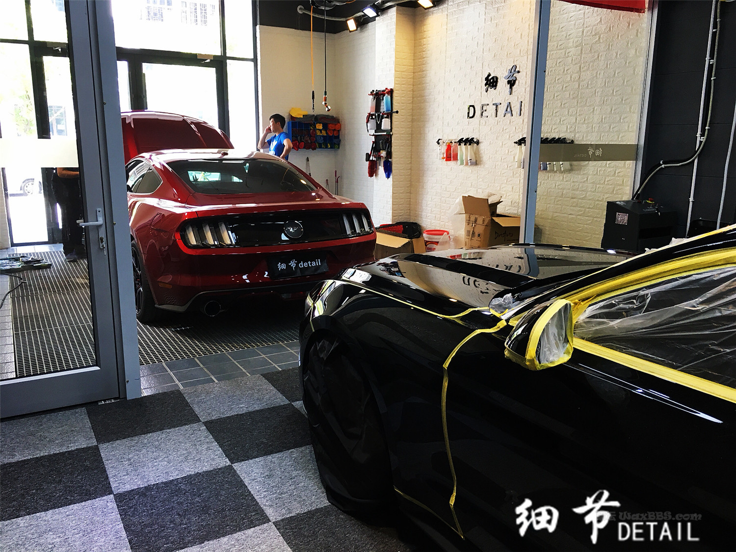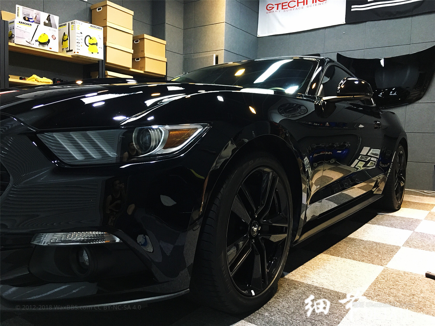 这辆黑色野马是我自己的车,提车一年半,各种暴力洗车留下的划痕。新店开业还不太忙,正好整备一下自己的车。这一年多它也辛苦了。