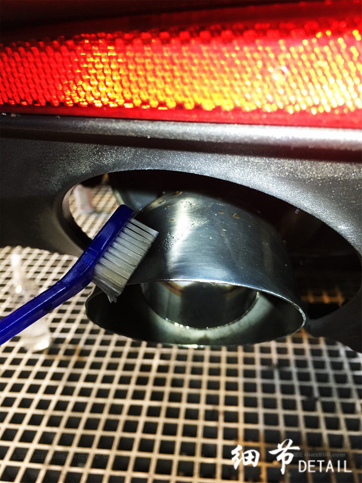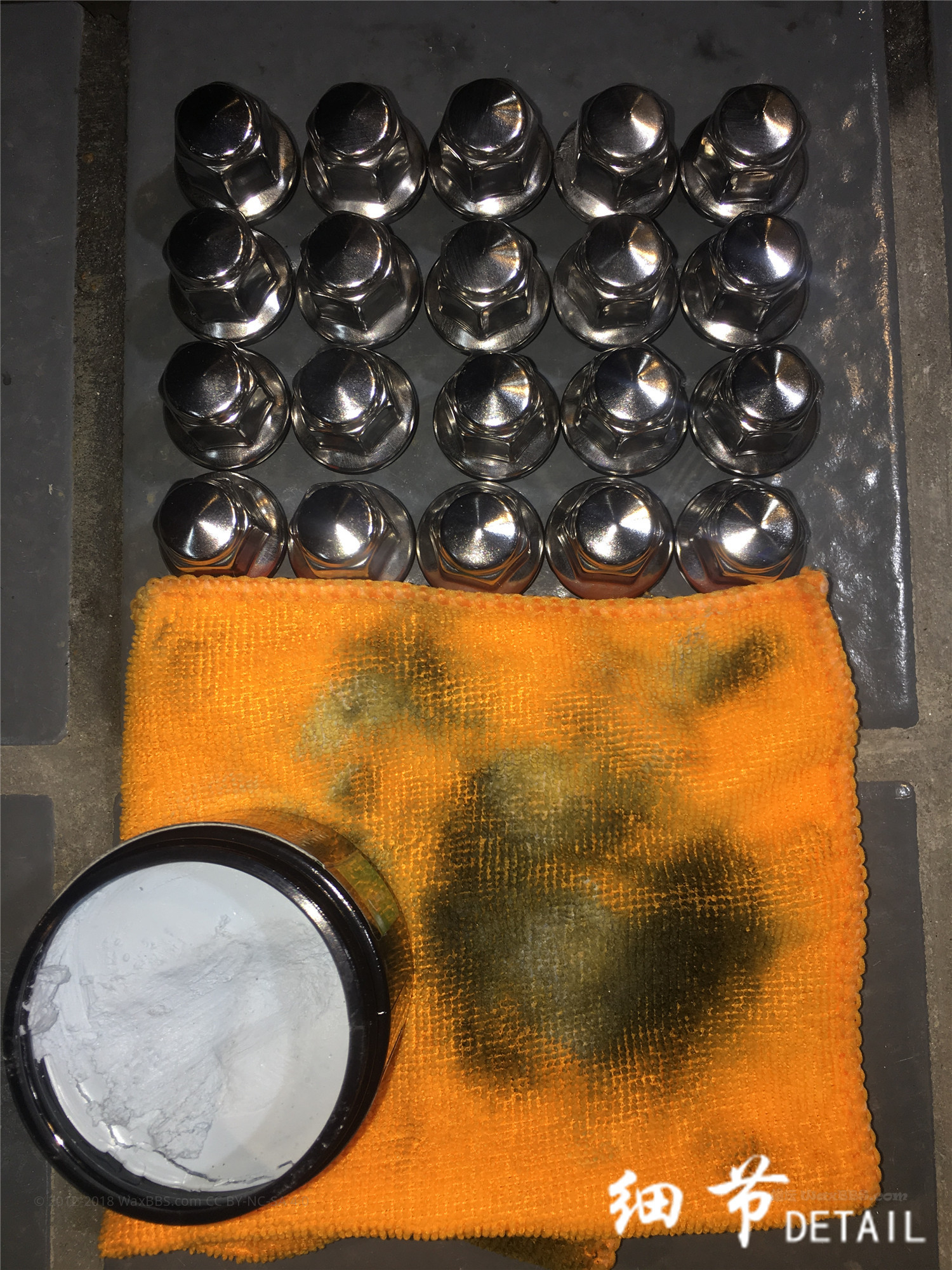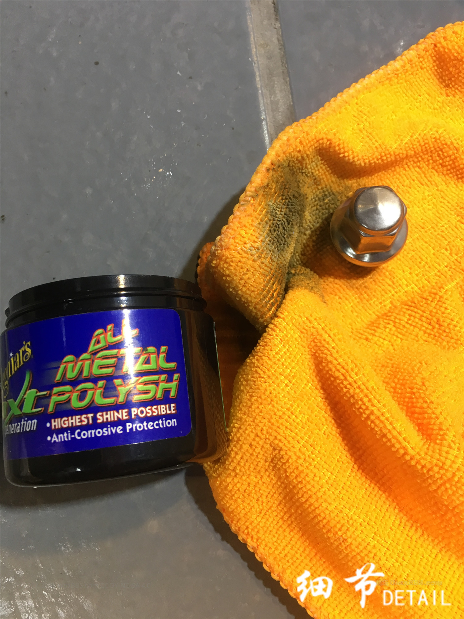 轮圈螺丝金属抛光,排气管清洁去柏油。没什么技巧,可劲磨吧。