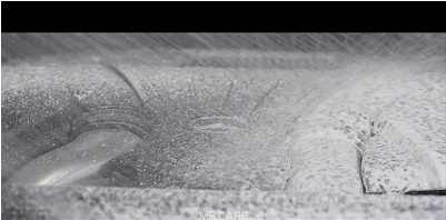 先来一个全车预洗~预洗液所产生的大量泡沫能包裹附着在车身上绝大部分的砂粒、粉尘,并随之滑落。