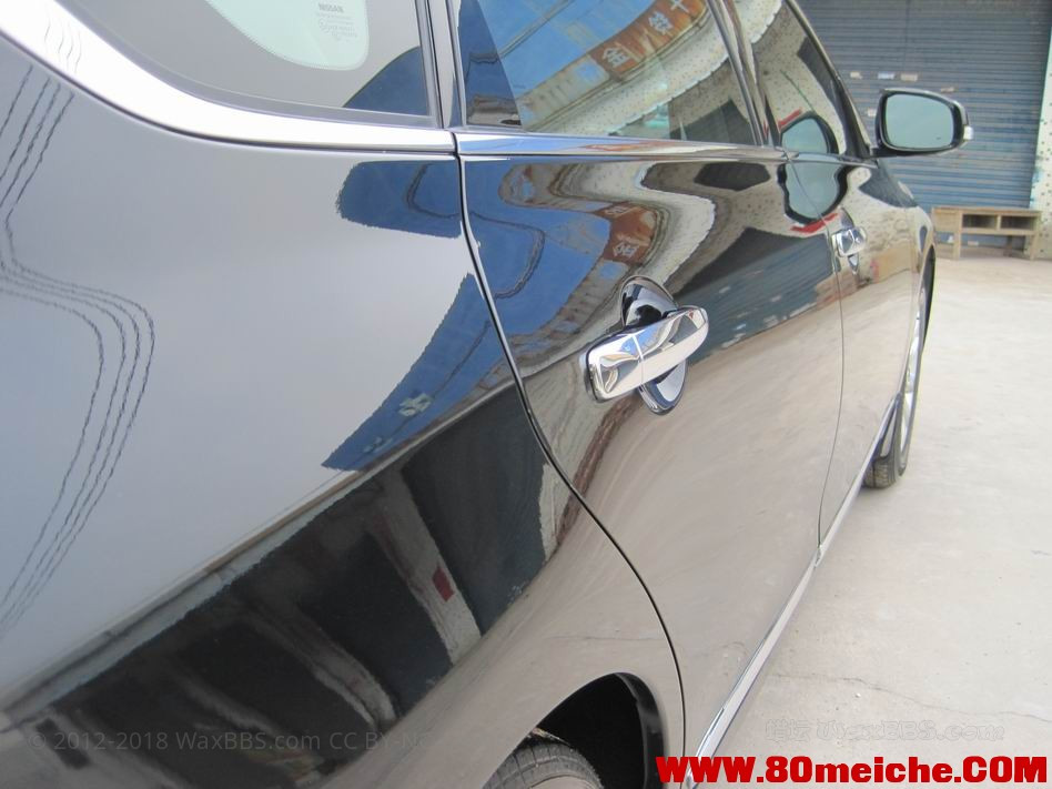 非常爱疼车的车主,不定期过来打蜡。(小弟教她摸一下洗完车的漆面是否粗糙决定是否需要打蜡。而不是固定时间去打蜡)车身没有什么特别严重的损伤。但总是有很多发丝划痕产生,她说平时在家里有空就会自己洗,发丝划痕方面,估计平时在家洗车的方式有关……这种情况,小弟推荐其实镀膜比较划算。虽然一次性支付的费用比较多,但减轻洗车出现的划痕却又很好的作用,而且长效。今次做的是日本WILLSON的透明sio2镀膜。膜层较厚。因为一盒只能做一台车啊…而且不能把剩余的留给下一台车用,因为这是AB两瓶液体混合后才会固化的镀膜剂。本次修复的研磨抛光损耗的漆面厚度平均是1~2μm。小弟接车的数量,就数nissan最多,总的感觉nissan的车比丰田的漆软。
