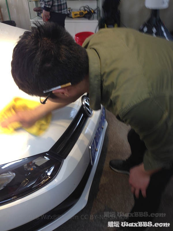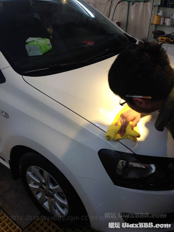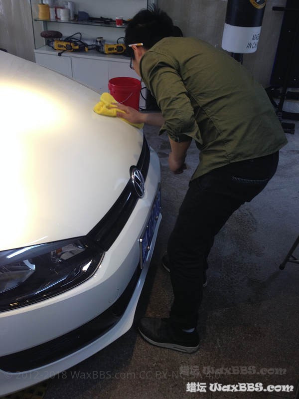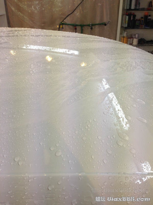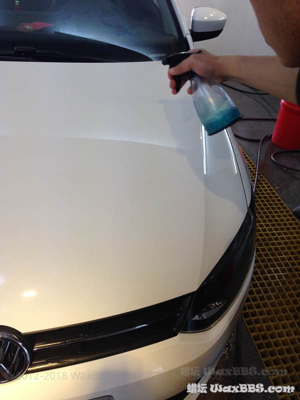 车主是洗车后 说要打蜡 所以一开始很脏很脏的车没拍 直接跳到洗柏油铁粉两桶水后脱脂(习惯) 觉得不是本地的 到别的地方可能被不正当洗车摧残 就提出加层hydro2 再上棕榈蜡 车身太阳纹一般般 想建议抛光 可是想想在别的地方没法养护 就算了