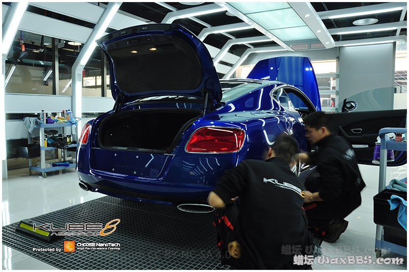 北京第一辆宾利欧陆W12 宝石蓝颜色真心漂亮{:53:}{:53:} 前段时间过来做的CHOOSE DLS 5层,这正好赶上车主又回来洗车,于是就发帖来验证下产品的持久度 实践证明,经过一段时间以后,能明显感觉到镀晶层还在,而且性能没有减弱,最后有图,可以看到圆滚滚滴落的水珠 我们的光隧道可不是简单的看着酷哦!施工时要根据不同情况选择不同的光源,这样才到达到完美的施工效果~...