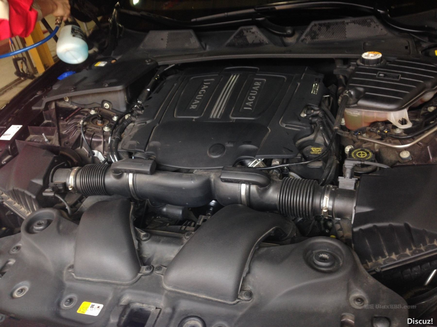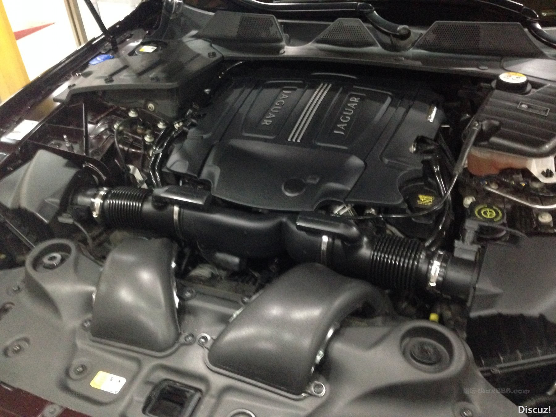 下面看看清洁完发动机舱和处理完漆面,打上zymol JAGUAR WAX