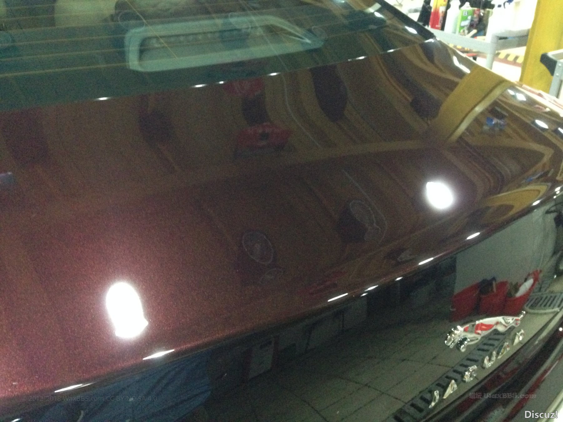 人生啊!!!这是因为自己考虑到朋友的尾箱,怕抛光时粉末进入里面,没有打开一半尾箱抬起抛,抛光盘壁碰到了后杠…………节衣缩食了