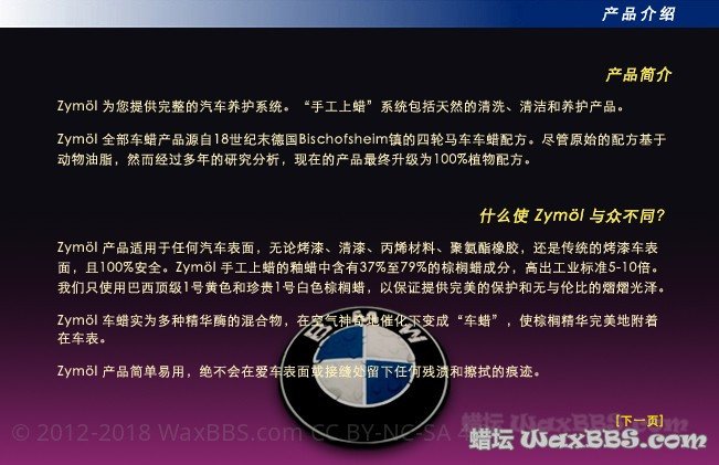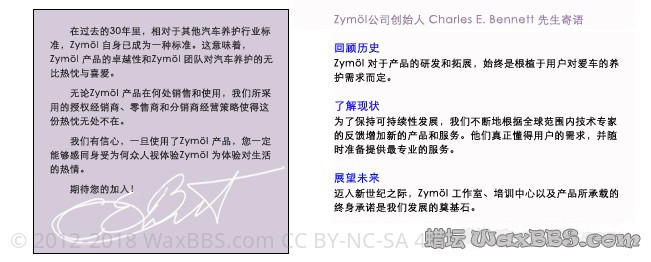本帖最后由 10年 于 2014-5-29 04:37 编辑 分享下: Zymol创始人: 历史、发源地: 牛B的瓶子: 尿性的钢圈刷:多少钱能猜出来不?上下不差100块的范围。。。。。 Zymol最初起源于德国Bischofsheim,超过200年的专业配方(是配方),目前所有产品都在美国生产,以蜡为主,但不仅仅只是车蜡,还可用在飞机、轮船、游艇等,还有些辅助小工具,Zymol蜡核心成份主要使用多种珍贵的天然棕榈,特殊成分与空气接触后产生发酵,并结合在漆面上,最高含有79%的巴西顶级棕蜡,特别是棕榈提炼高达十次,不加任何溶剂。顶级系列有终身添加的服务。 上个顶级蜡: zymol SOLARIS Glaze 顶级蜡中的极品,带不少附加服务。 成份:79%的巴西最顶级白棕榈蜡、樱桃油、常青树油、哈密瓜油、橄榄油、椰子油、香瓜油、向日葵油。 其它产品目录: 蜡及蜡市场详细的文章,安弗客中村淳一先生10年前写,里面也有不少部分对Zymol蜡的部分 : http://www.360doc.com/content/13/0214/00/235269_265523551.shtml